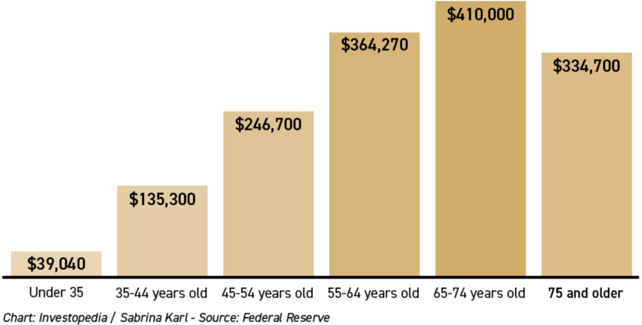 Median net worth by age group un the U.S. according to 2022 Federal Reserve survey data.