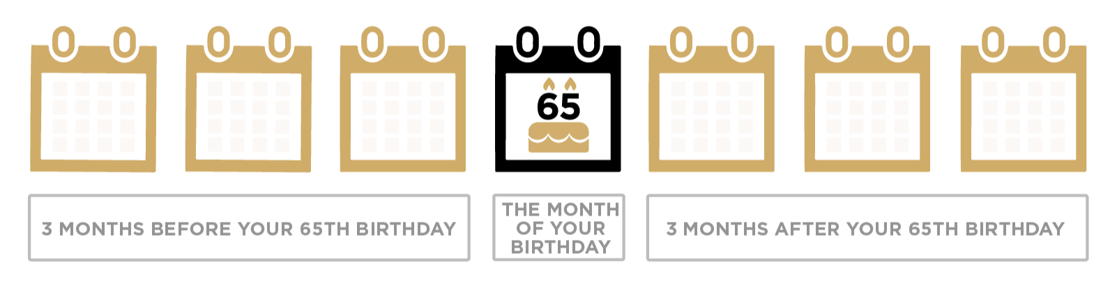 You can enroll in Medicare during your Initial Enrollment Period (IEP), which starts three months before your 65th birthday, includes your birth month, and ends three months after.