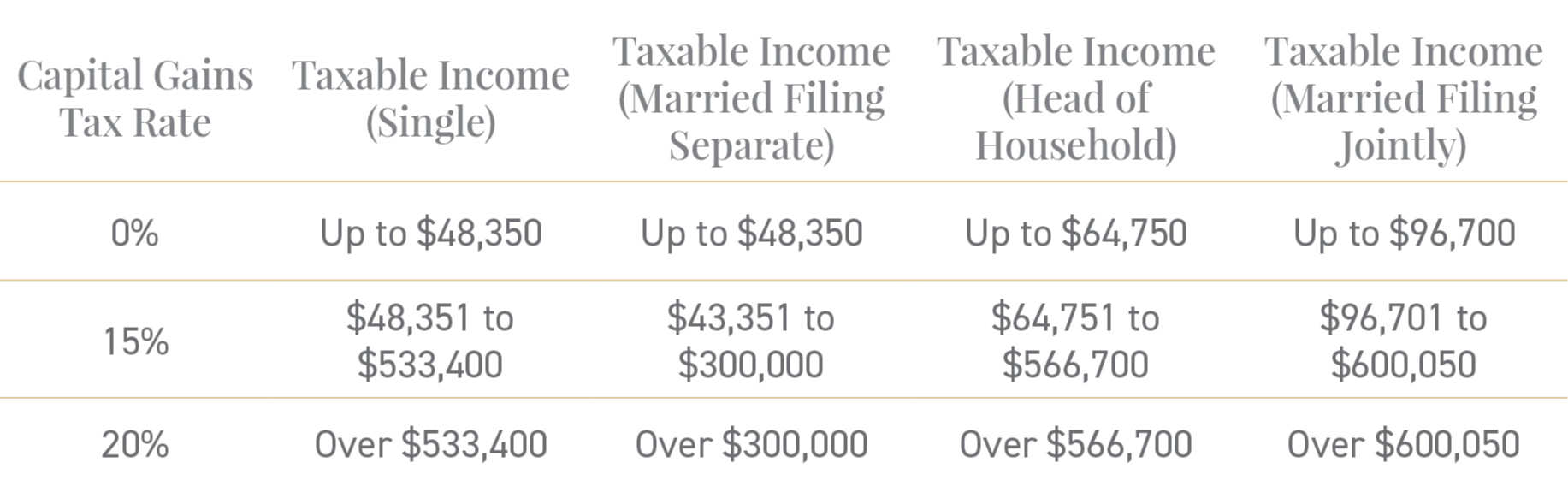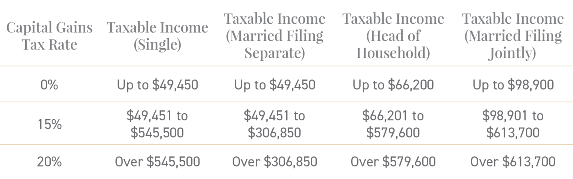 2026 capital gains tax rate income thresholds